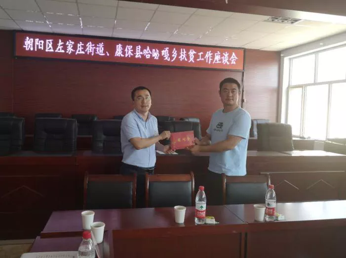 德元人力黨支部書記田志(左一)向康保縣哈咇嘎鄉捐款10000元